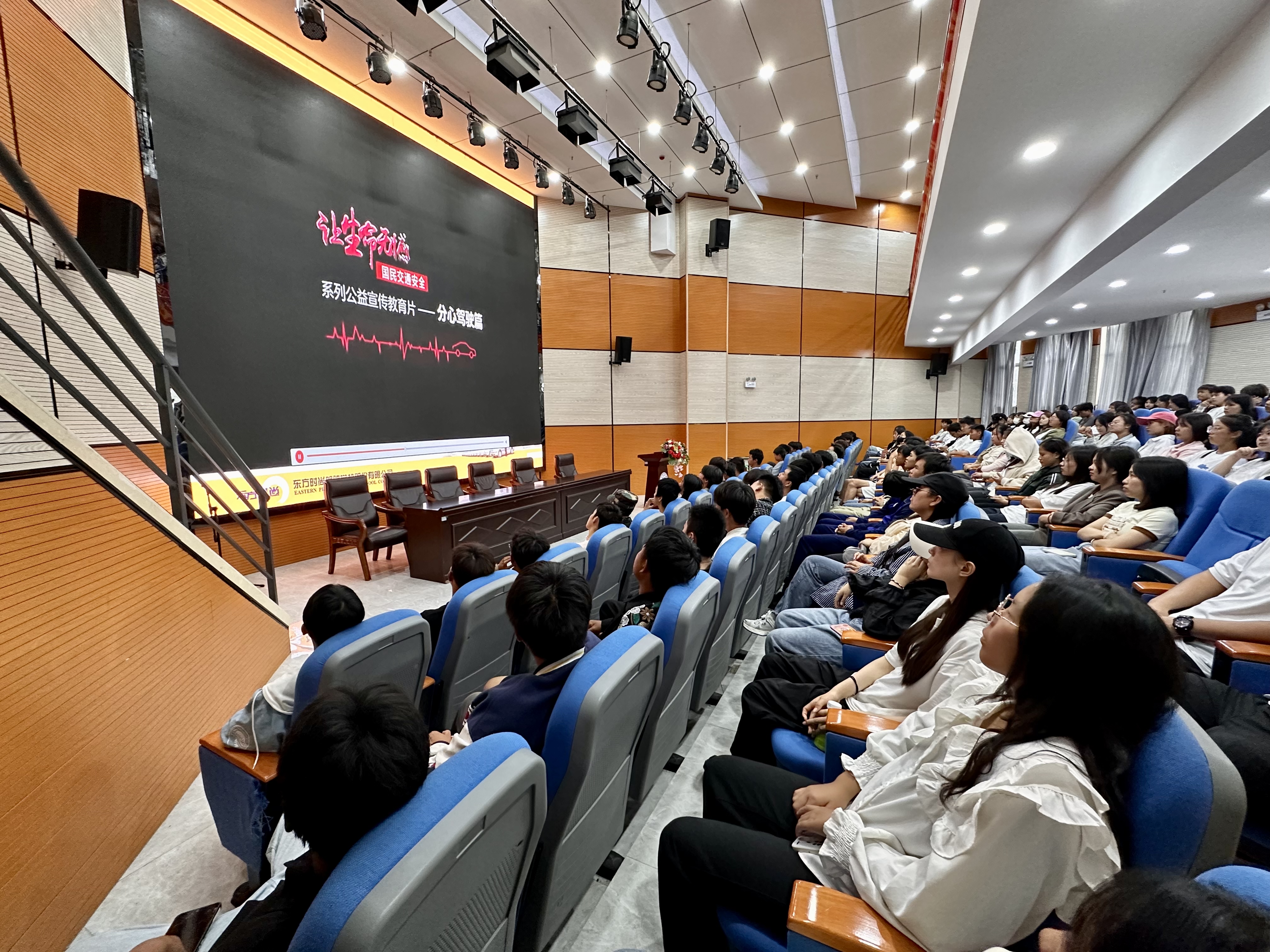 讲座中赵老师用教学视频播放观看事生活中的实际案例,为学生详细阐述交通安全的重要性,树立交通安全意识。希望全校师生从自己做起,增强自身安全交通意识,在全校形成“关爱生命、文明出行”的良好氛围。
