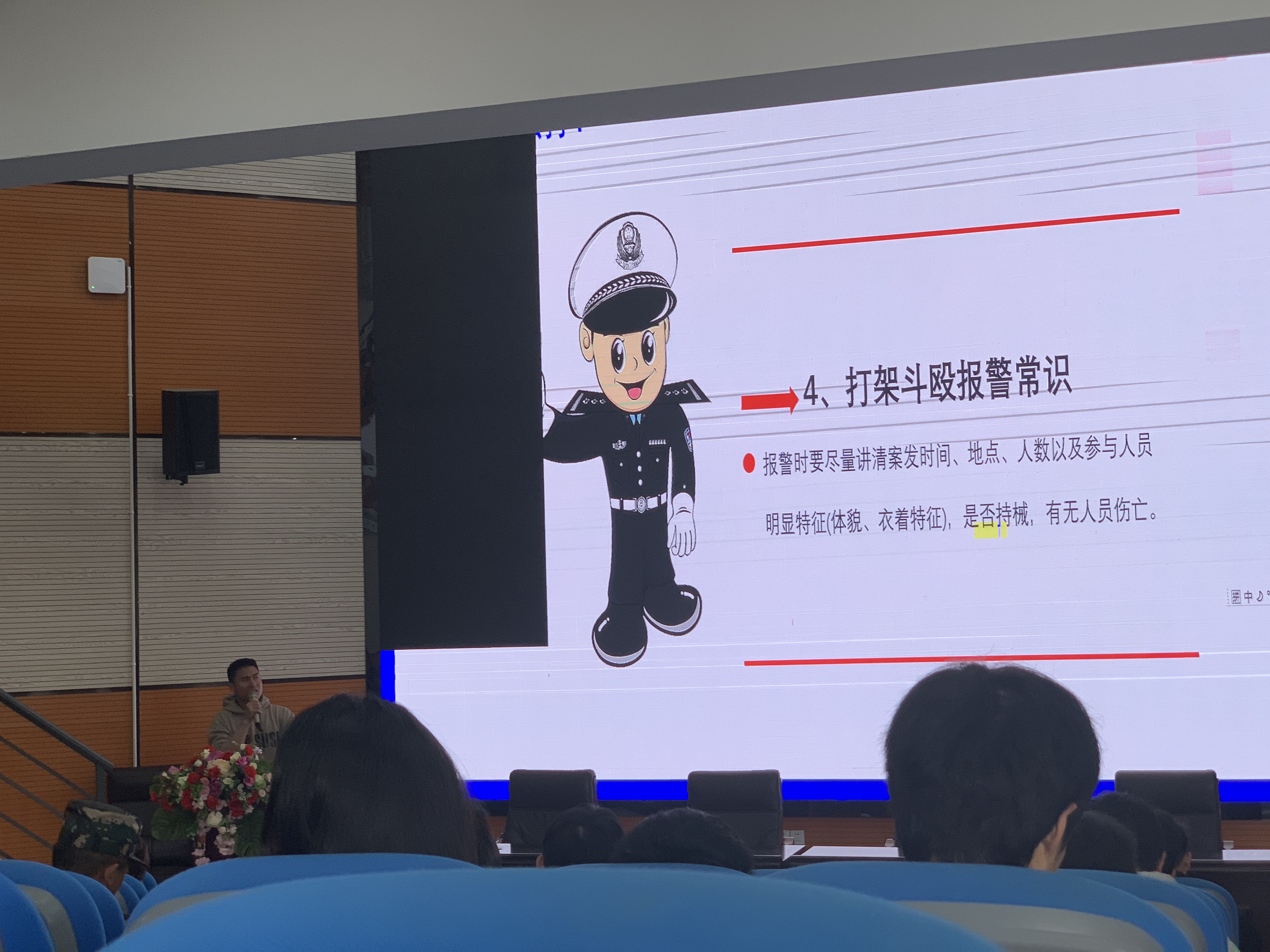 讲座中采用教学视频播放观看生活中的实际案例,为学生详细阐述校园“110”进校的重要性,引导学生树立正确的报警常识。希望全校师生从自我做起,做一个知法懂法守法的小公民,在全校形成遵纪守法的良好氛围,正确使用校园“110”。