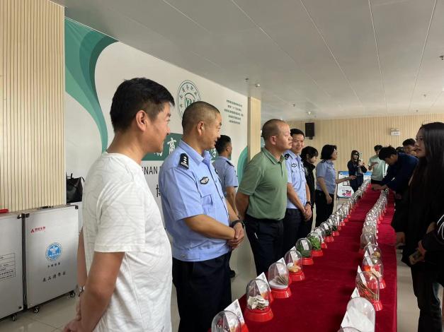 活动二:禁毒知识咨询和毒品模型展示。讲座结束后后,移步至大学生活动中心,进行禁毒知识现场咨询,同时现场展示毒品模型,云南省第五强制隔离戒毒所专业警察现场讲解,加强师生对识毒、防毒、拒毒等禁毒知识的认知。期间戒毒所为同学们提供了禁毒知识法律咨询的服务,同学们积极咨询和了解,强化安全管理意识。活动结束后,双方现场合影留念。