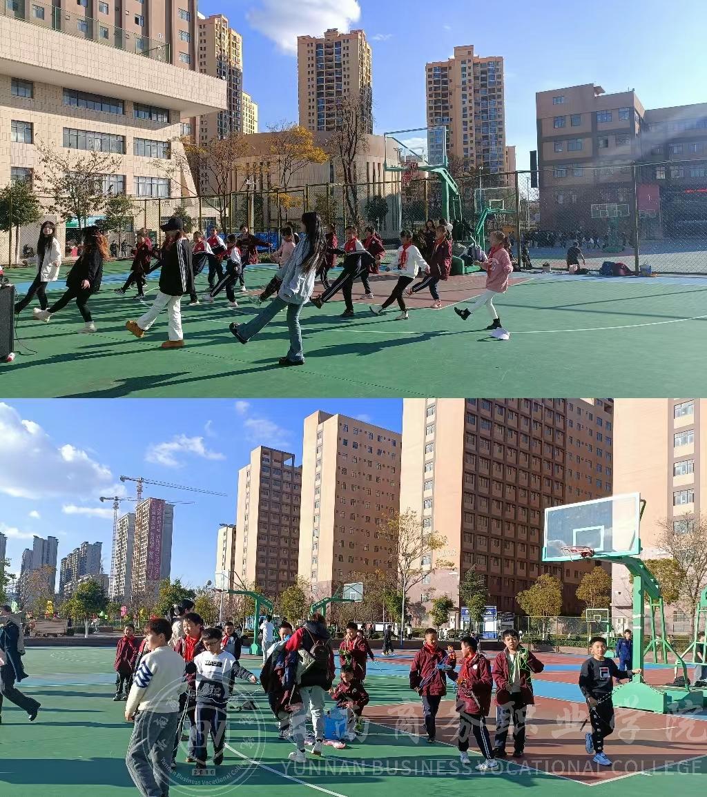 最后一个模块是“强身健体,助力双减”。同学们一起喊出了强身健体的口号,并来到了篮球场,开始学起了啦啦操和花样跳绳。即使累得满头大汗,但是孩子们的热情依旧高涨。强身健体,助力“双减”,只有学校、家庭、全社会真正树立起健康第一的理念,才能实现学校教育、家庭教育与“双减”政策的同向而行,真正为孩子的成长营造一个健康的环境。
