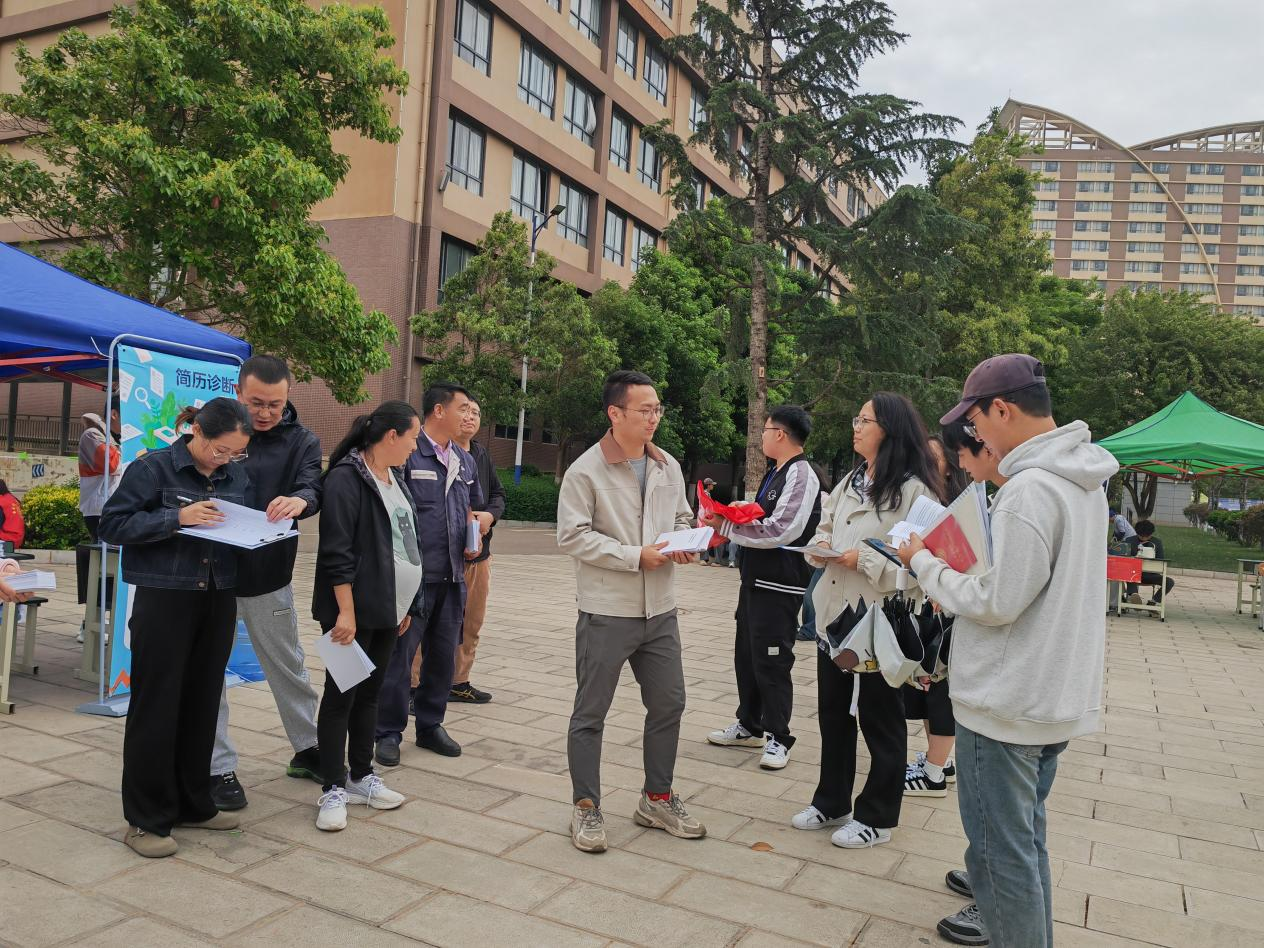 求职路上的"红色加油站"在会场入口处的"党员先锋服务站",10余名教师党员正为毕业生提供"一对一"就业政策咨询、简历指导、企业及学生需求服务、现场督察企业招聘的合规性。"面对学生的疑问,来自党支部的老师耐心解答,手边厚厚一摞《就业政策指南》不到两小时已发放过半。