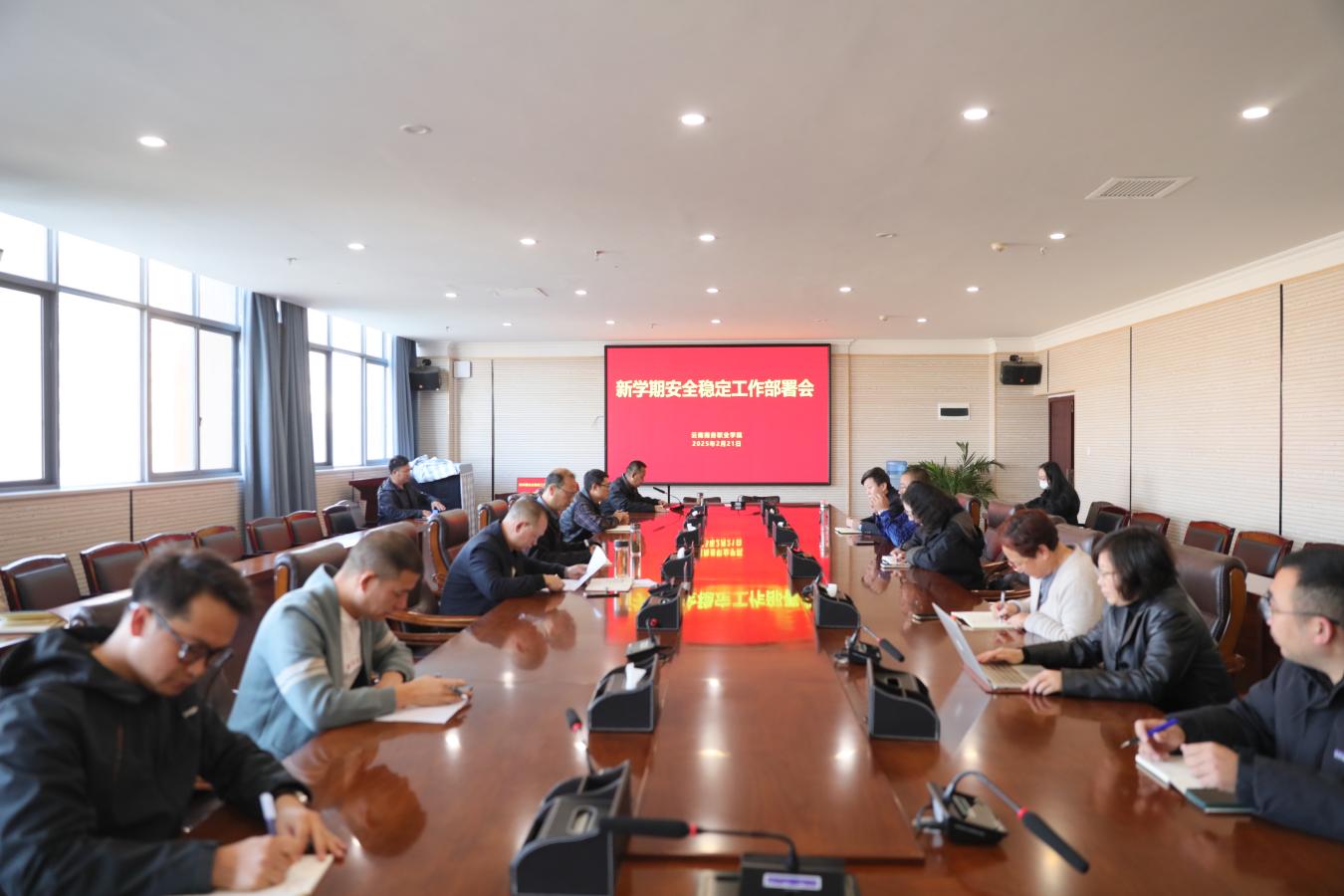 为全面做好2025年春季学期开学准备工作,确保校园安全稳定,学校于2月21日上午在七楼大会议室召开“新学期安全稳定工作部署会”。学校领导班子成员、全体中层干部参会。会议由总务处处长张唐颂主持。