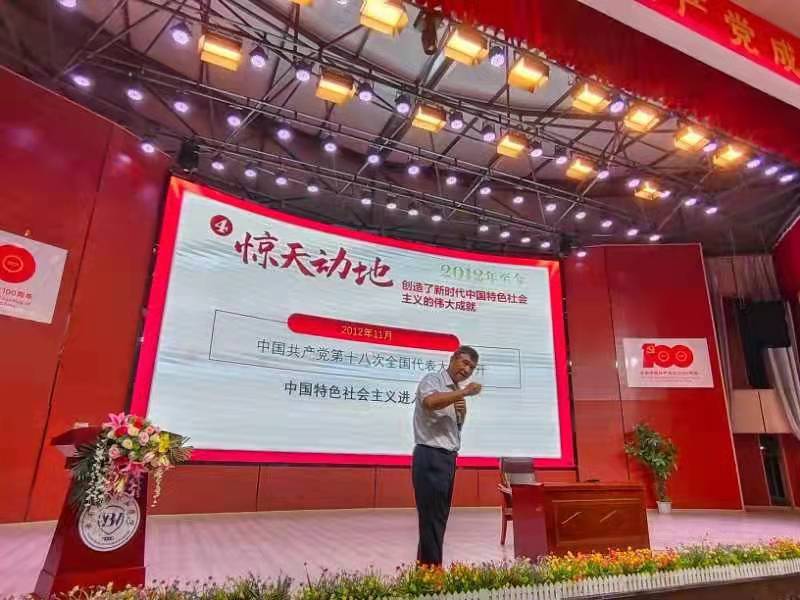 李锡云校长说到:“党的百年丰功伟绩经历了从开天辟地、改天换地、翻天覆地到惊天动地的大变化,这是中华民族的伟大光荣,是中华人民的伟大光荣,是中国共产党的伟大光荣,诠释的是一份坚持真理,坚守理想;践行使命,担当使命;不怕牺牲,英勇斗争;对党忠诚,不负人民的伟大建党精神,我们需要将其践行于心,才能迎接