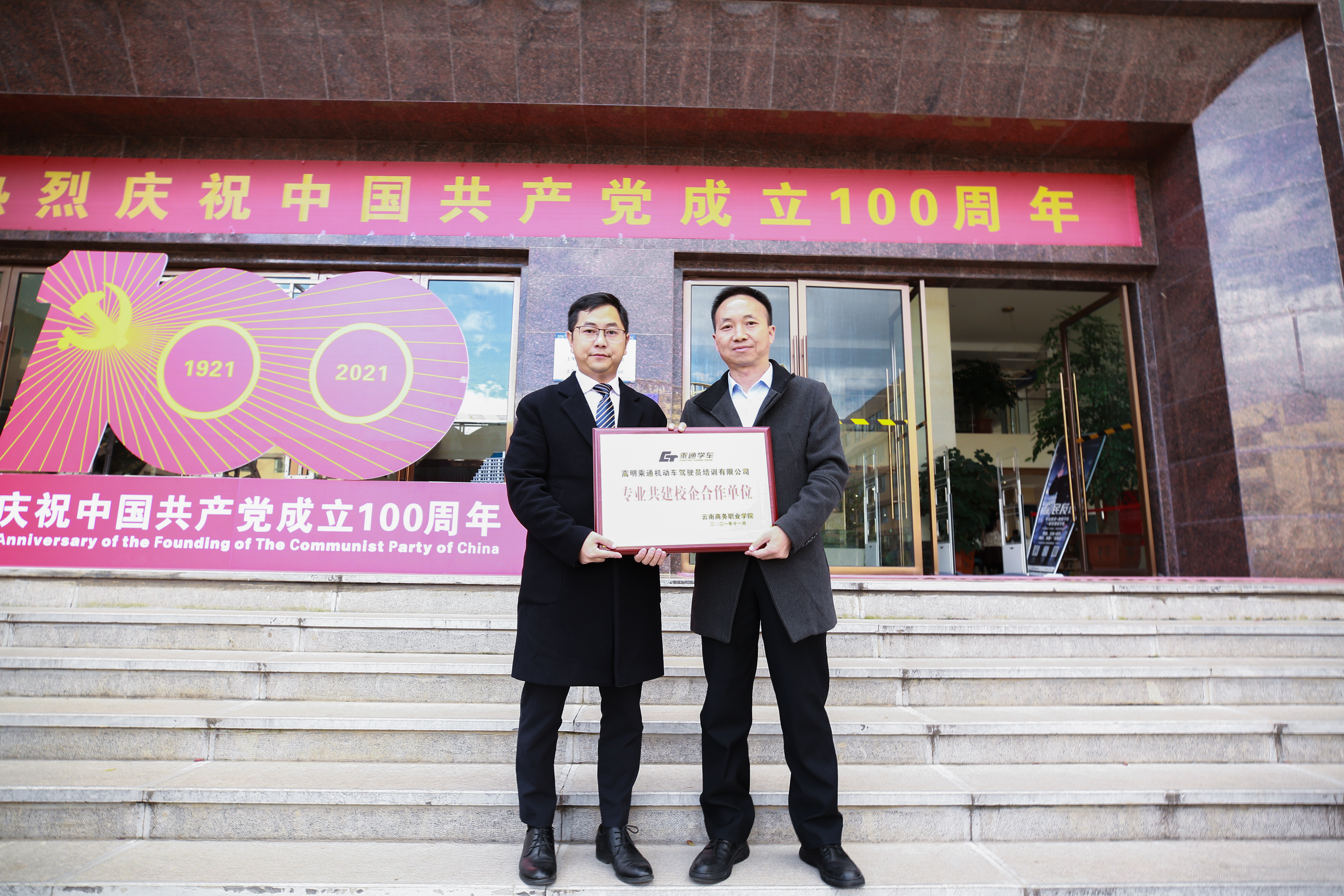 2021年11月15日,SUNBET申搏和嵩明乘通机动车驾驶员培训有限公司在学院图书馆前隆重举办专业共建校企合作单位签约授牌仪式。SUNBET申搏理事长王郅强、党委书记赵志永、校长李锡云及各二级学院相关领导;乘通集团董事长桂进凯、运营总监李炳昌、总经理陈普德及十余名乘通驾校教练员出席签约仪式。