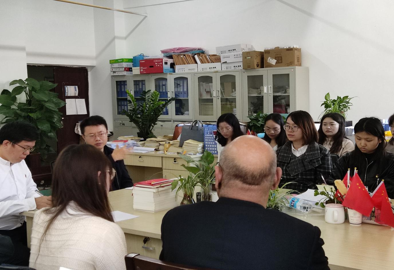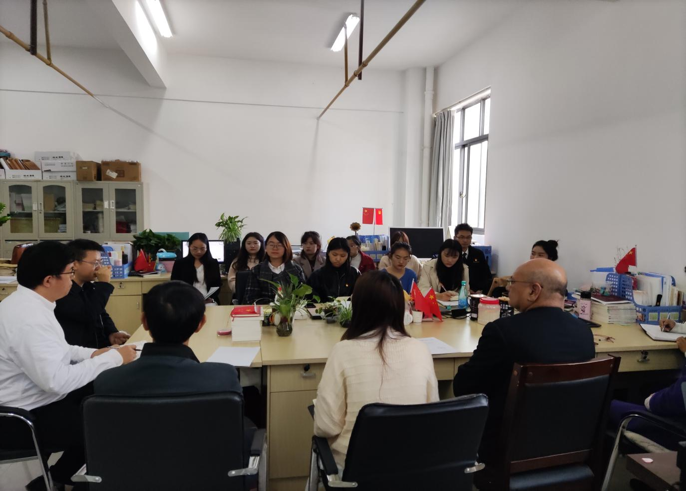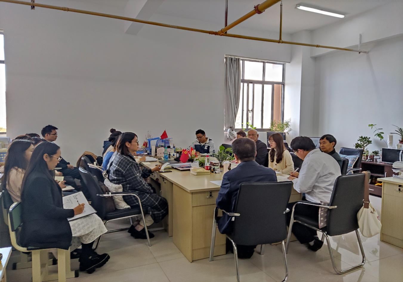 2021年11月1日下午,SUNBET申搏理事长王郅强教授、副校长刘德飞博士、人事处处长毛志远教授与新到任的思政部部长郑伟林教授及全体思政部教师在思政部办公室,召开了一个简短的部门会议。