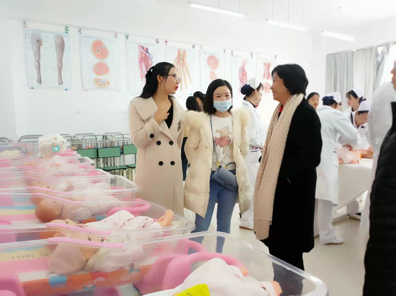 2021年12月9日上午 ,爱帝宫负责人谢根一行在护理学院院长郭爱梅教授、护理学院教务科科长刘艳花的陪同下,爱帝宫集团负责人谢根一行对我校护理学院实训室进行了参观。