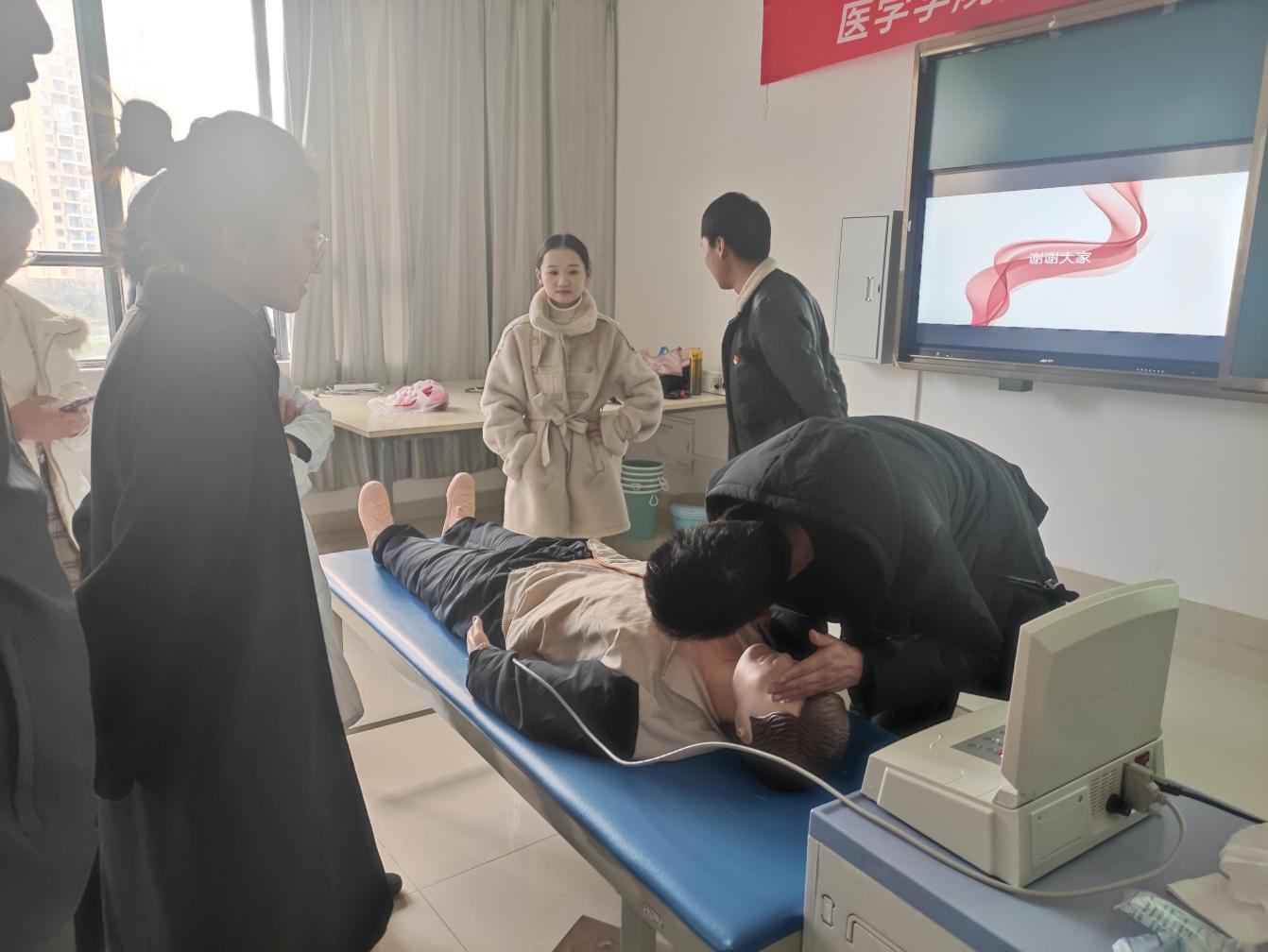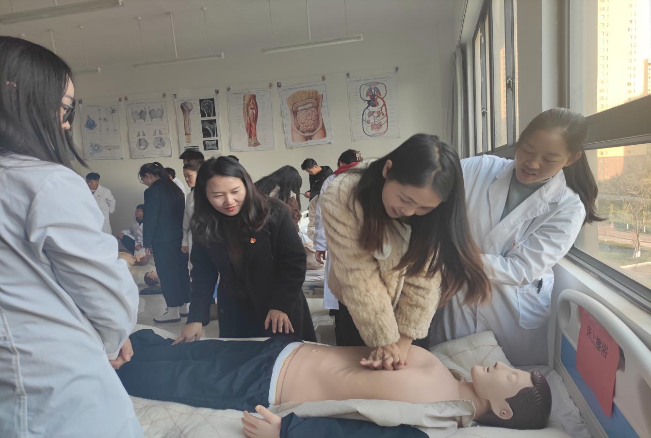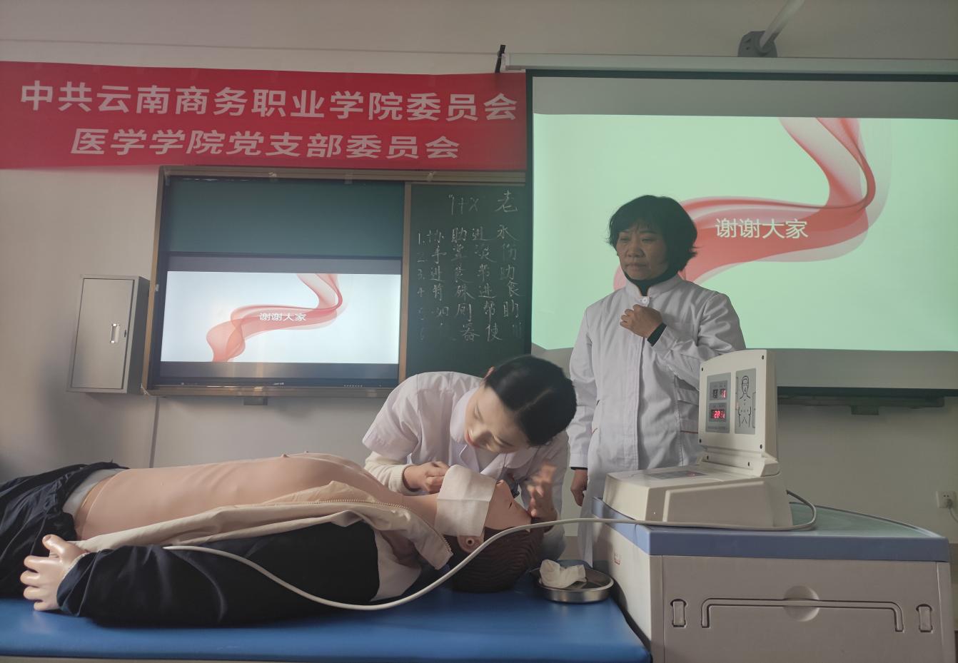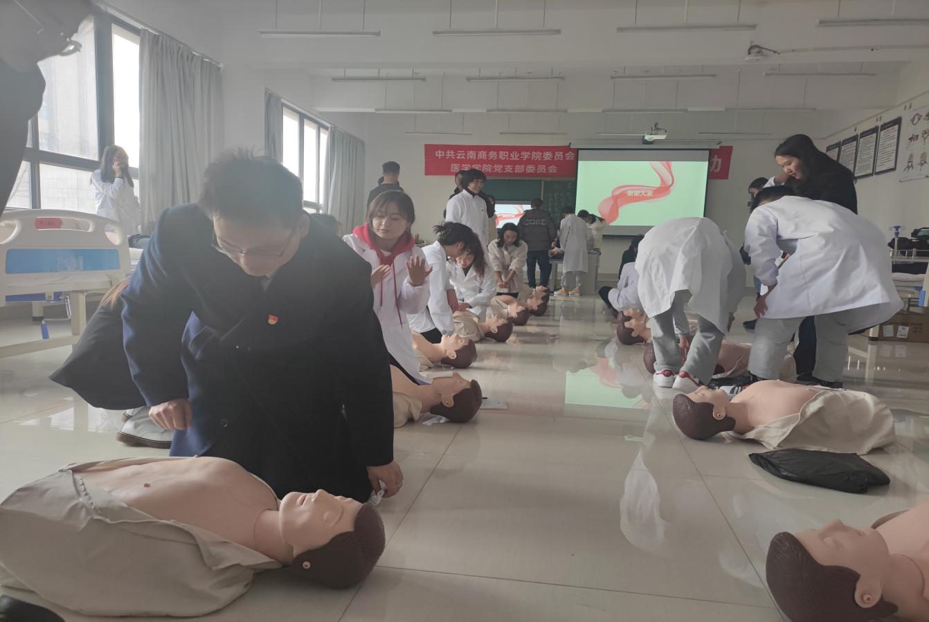 2021年12月22日,医学学院党支部在2栋教学楼405实训室召开“急救技能培训”的主题党日活动,医学学院党支部全体党员参加