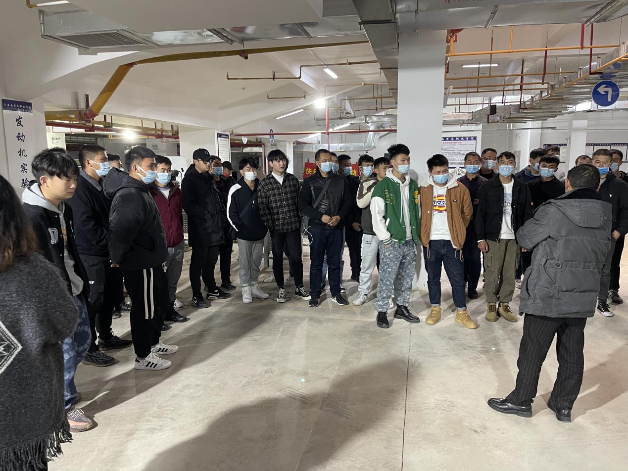 (学生参观汽车检验专业实训基地)