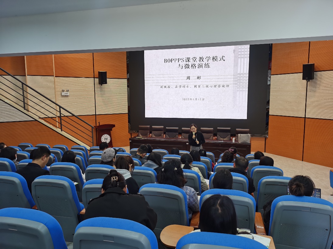 为促使广大教师树立现代教育思想和先进教学理念,掌握先进教学方法和手段,进一步提高教学技能和教学创新能力,巩固学期初教学方法学习与演练的培训结果,4月12日——13日,学校再次学校特邀云南国土资源职业学院原马克思主义学院院长、教学督导周彬副教授,为我校教师带来题为“BOPPPS课堂教学模式与微格演练”的培训。我校汪湳副校长,教务处窦洁萍副处长出席本次培训,29位报名参加演练的教师及另外30余位教师参与培训。