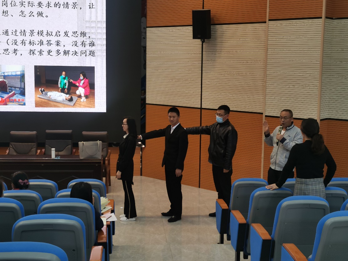 结语:为期两天的学习演练中,参训教师全程参与课前准备、课中互动、演练反馈等环节,周彬副教授与参训教师们围坐在一起,开展专题学习、交流研讨、实操实训,气氛热烈。参训教师通过BOPPPS课堂教学模式对教学方法有了全新的认识与理解,纷纷表示这次培训和演练让自己受益颇丰。通过微格教学实操实训对教学实践有了更好,更深入的体验。大家纷纷表示会将培训所学内化于心、外化于行,结合职业教育的教学理念,将更好的教学内容、教学设计展示给学生,为学校的高质量发展做出贡献。