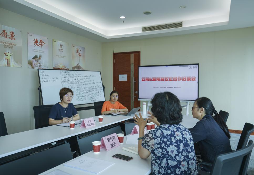 两天的洽谈,校企双方进一步补充完善了现代学徒制校企合作协议,明确项目落地的各项实施细则,拟成立项目专业建设委员会,为后续的校企合作人才培养保驾护航,并确定于9月建立“爱帝宫”母婴护理班,依据建班人数规模投建1-2间母婴实训室。项目建设中企业表示除常规投入外,为增加人才培养的稳岗,还增加了资助订单班学生2-3年学费的举措。