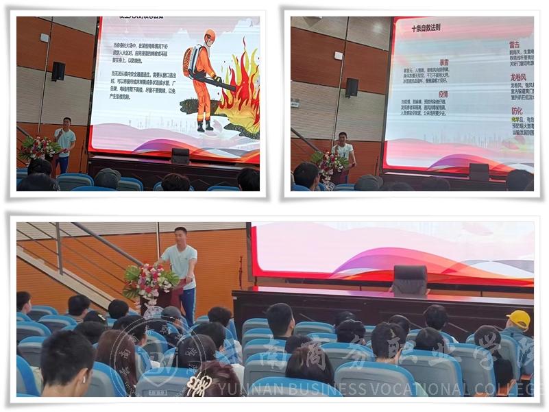 本次宣讲活动围绕暴雪、雷击、疫情、龙卷风、火灾、地震、防化等自然灾害和安全事故处理技能知识进行深入讲解,通过教学视频让全体师生观看生活中的实际案例,现场演示紧急避险法、止血法和急救包扎法,增强师生自然灾害防范意识,提高实施自救互救和突发事件处置能力,保护自身的生命安全。