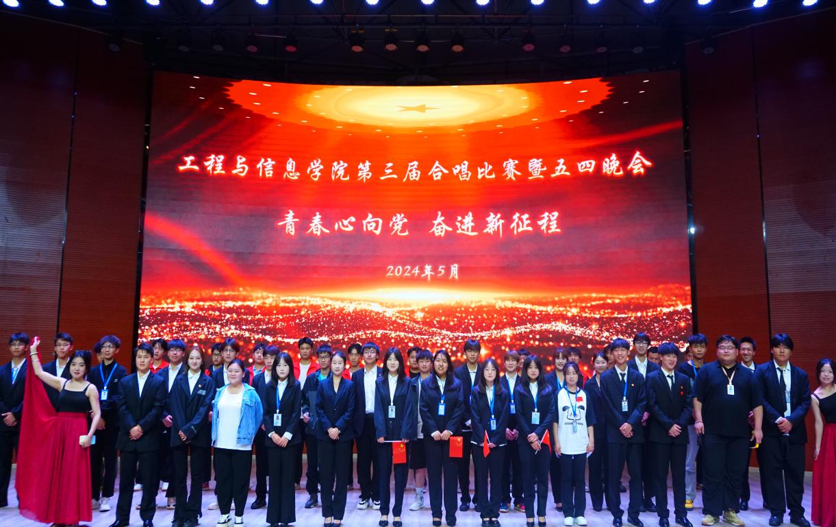 2024年5月28日,工程与信息学院党支部组织工信学院与应急学院全体师生在学生会堂举办‘青春心向党,奋进新征程’五四合唱大赛。本次大赛旨在通过唱响红歌,激扬青春,表达师生们对祖国的热爱和对党的忠诚,同时展现新时代青年的精神风貌和奋进姿态。
