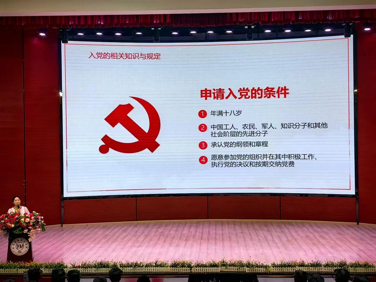 宁娇老师从党的基本知识和党的历史发展角度切入,从新时代党员的标准、申请入党条件、党员的权利与义务三个方面展开,向全体新生阐述了什么是正确的入党动机、入党的基本条件和具体流程、以及在校大学生如何用实际行动入党,他鼓励大一新生在入学伊始就要积极向党组织靠拢,认真学习中国共产党党史和习近平新时代中国特色社会主义思想,贯彻党纪学习教育,持续学习党的二十届三中全会精神,不断坚定理想信念,提高自身修养,用党员标准严格要求自己,用党员的先进性对标自己,争取早日成为一名中国共产党党员。