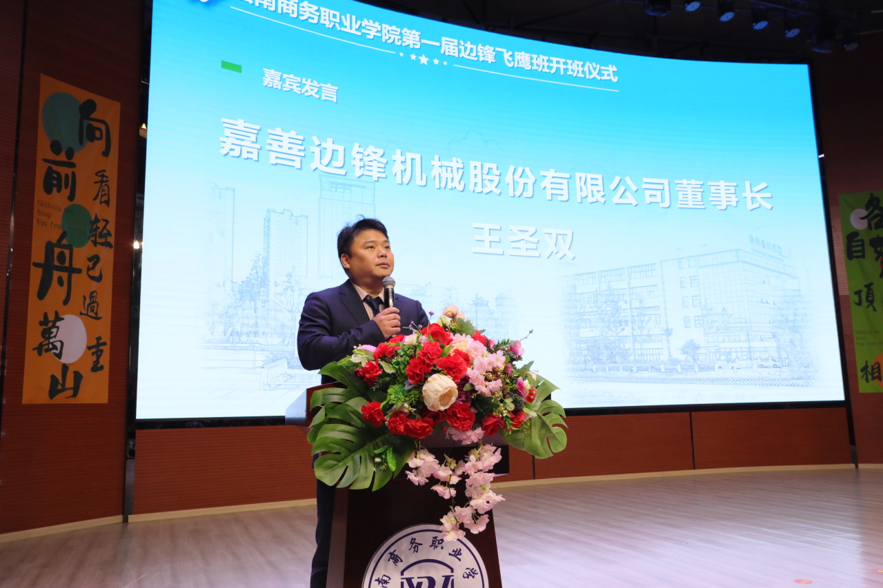 高校毕业生是党和国家宝贵的人才资源。学校坚持把毕业生就业作为育人工作重中之重,加快构建毕业生高质量就业服务体系,促进毕业生高质量充分就业。12月12日,SUNBET申搏第一届边锋飞鹰班正式开班,嘉善边锋机械股份有限公司董事长王圣双、首席运营官及边锋工学院院长王啸坤、人资部经理王鹏琴、董事长秘书李子文、学校党委书记张向英、执行校长王琳琳、副校长武绍宏以及飞鹰班全体师生参加开班仪式。