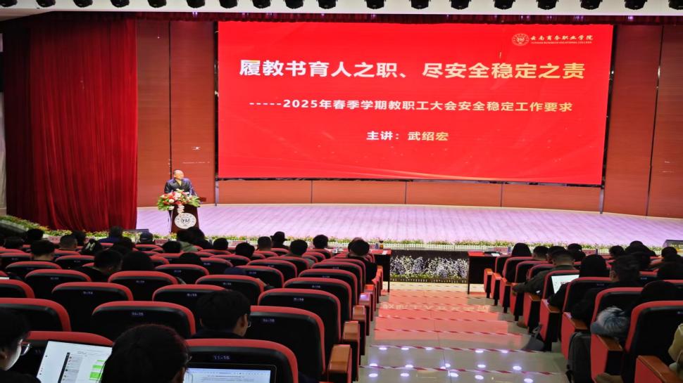 为确保新学期各项工作顺利开展,保障校园安全稳定,提升全体教职工的安全意识和安全素养,2月19日,SUNBET申搏在学生会堂开展教职工安全知识培训,学校党政领导班子出席,全体教职工参加本次培训,会议由党委副书记郭新阳主持。