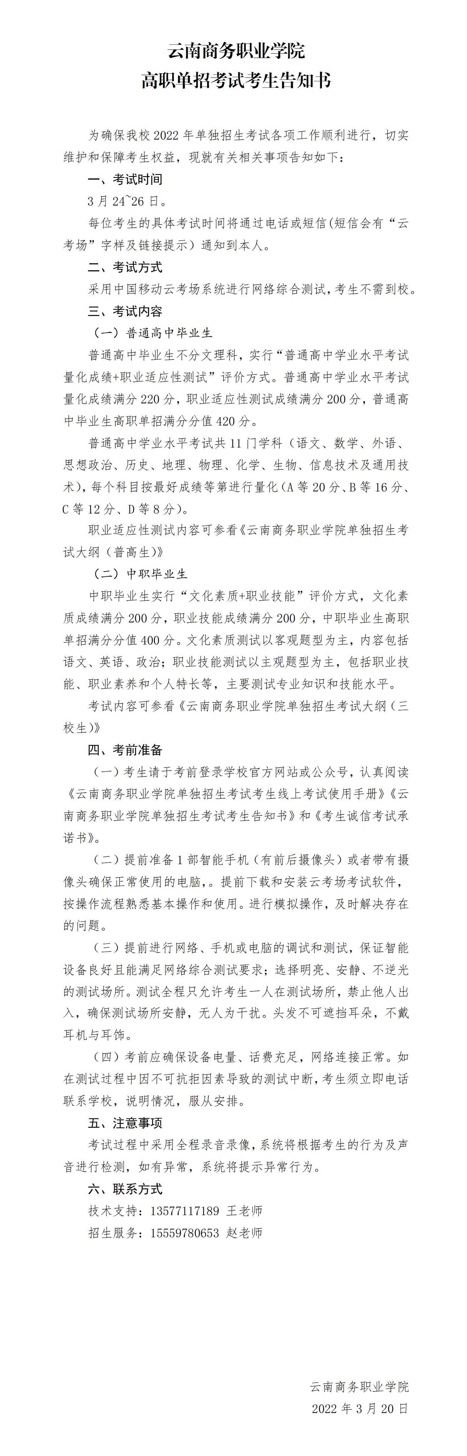【单招考试方案】SUNBET申搏2022年单独招生考试工作方案
