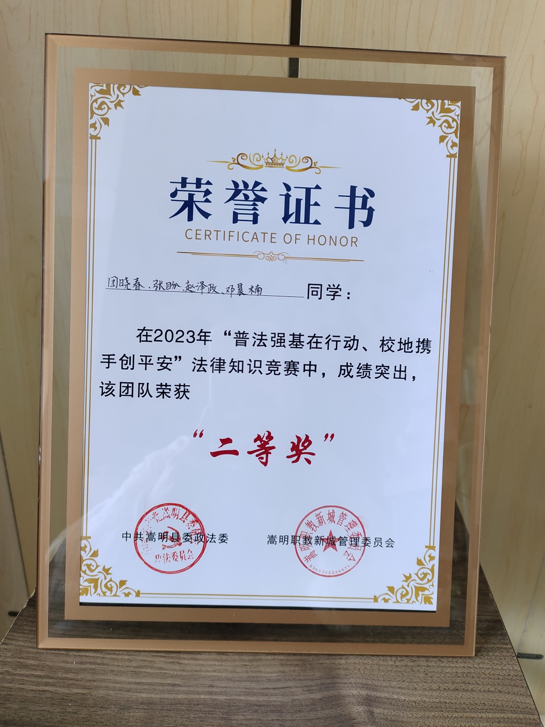 5.2023年“普法强基在行动、校地携手创平安”成果展示评比中荣获第三名;